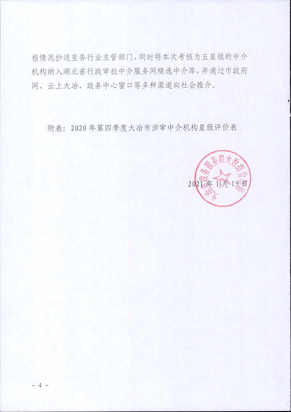 據大冶市政務服務和大數據管理局消息,公司獲評2020年大冶市網上“中介超市”第四季度五星級中介服務機構。公司自2020年8月入駐大冶市網上“中介超市”以來,成功中標《大冶市福美鋁業有限公司12萬噸鋁棒、鋁錠生產項目環境影響評價》等環評、水保類項目5宗。公司秉承“創品牌、優服務”的理念,報名競價參與度、中標業務量、中介服務進度及中介服務評價等方面得到大冶市相關行業主管部門及業主單位的一致好評。(陳望)